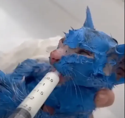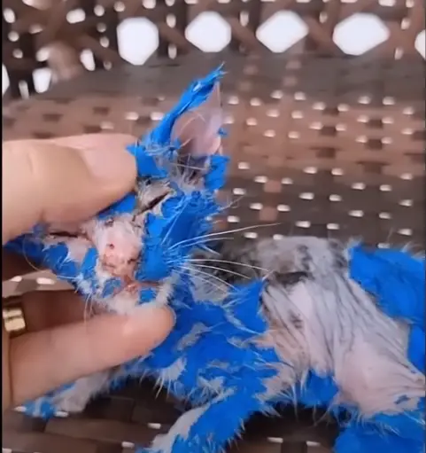 The blue paint had dried and hardened across Blue’s tiny fur, causing her visible discomfort and irritating her sensitive skin. It was clear she had been deliberately painted and abandoned. Her rescuers rushed her to a veterinarian, where a slow and careful cleaning process began.