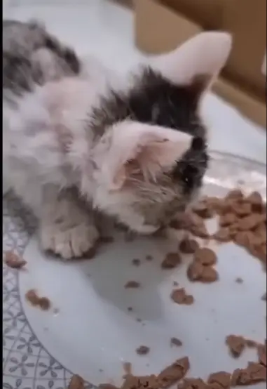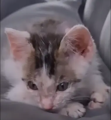 Rescuers found the kitten—now named Blue—during a heavy rainstorm, visibly terrified and in obvious pain. One rescuer recalled, ‘We were shocked and furious. Someone had used her like a toy and discarded her without care.’